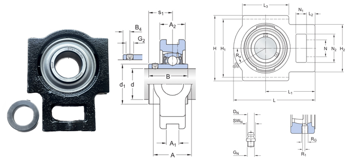滑块式球午夜福利视频免费看单元包含一个安装在灰铸铁午夜福利视频免费看座内,基于密封深沟球午夜福利视频免费看的嵌入式午夜福利视频免费看。 它们通常安装在调紧框架内,内圈两侧加长,通过拧紧内圈上的(紧定)螺钉锁定,便于安装。